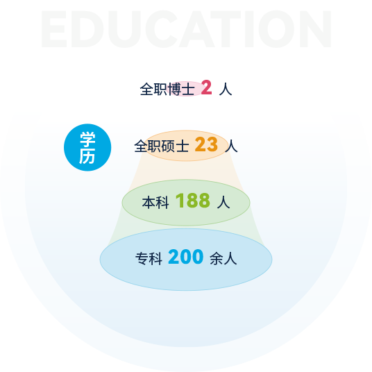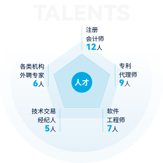 截止2024年,公司擁有各類人才400余人,其中全職博士2人,全職碩士23人,本科188人,專科200余人,注冊會計師12人,專利代理師9人,軟件工程師7人,技術(shù)交易經(jīng)紀人5人,南京企服中心等各類機構(gòu)外聘專家6人,公司還和南京大學、東南大學、南京農(nóng)業(yè)大學、南京信息工程大學、南通大學、江蘇開放大學等建立了良好的合作關(guān)系。